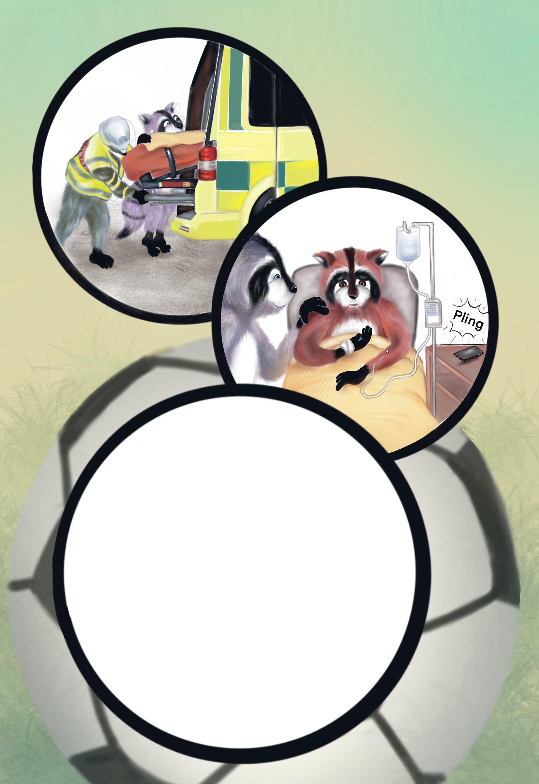 Men mitt i matchen händer det som inte får hända! Ery halkar i det blöta gräset och en motspelare råkar skära upp hennes ben med sina vassa dobbar på fotbollsskorna. Hjälp, det blöder! Och det blöder mycket. Vad ska de göra nu?