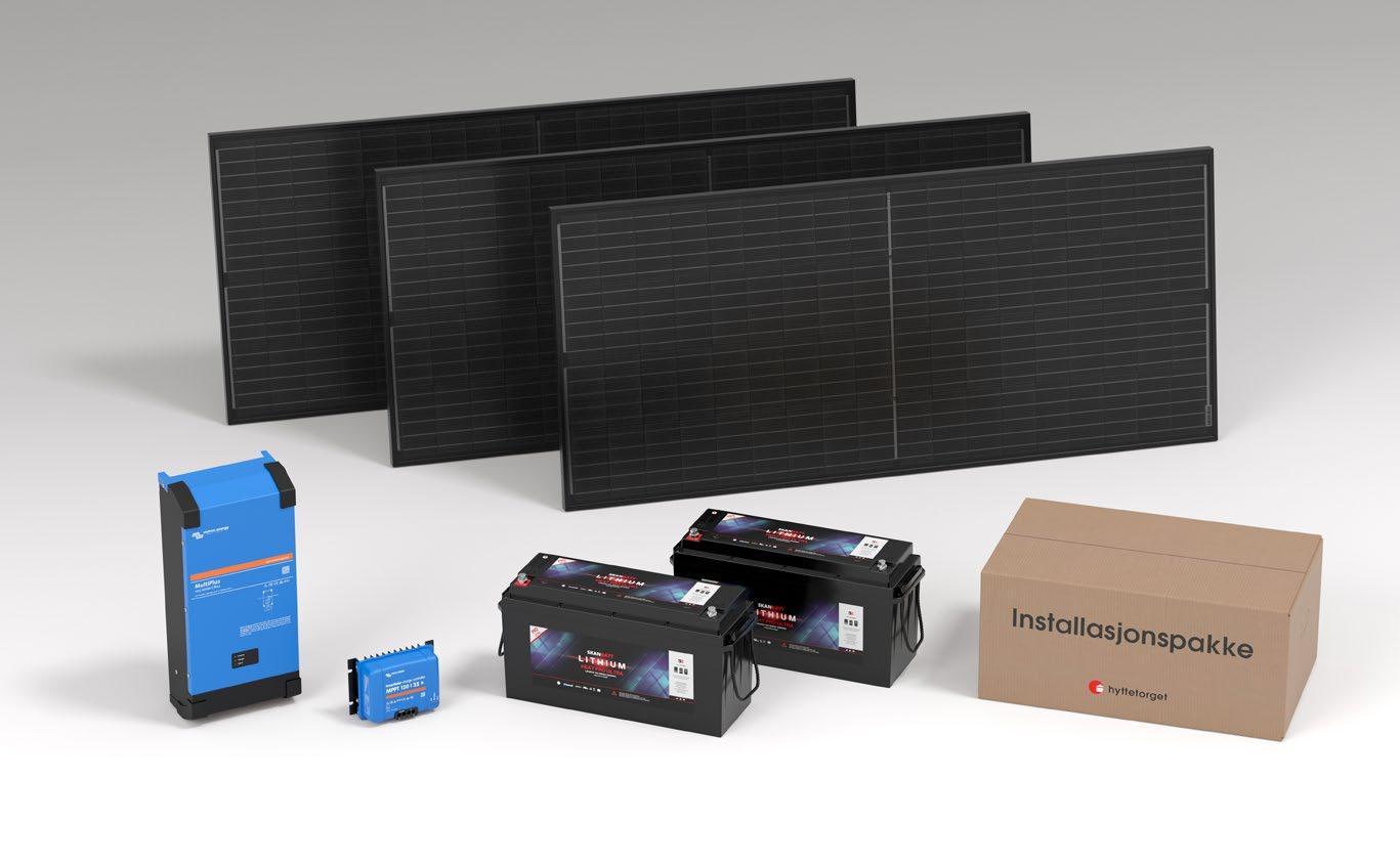 Inneholder: 335W solcellepakke med 200Ah Improve Lithium batterier og 30A MPPT regulator.