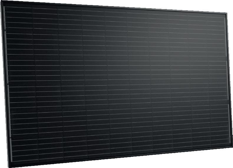 Solcellepaneler med PERC teknologi som gir høyere ytelse. Disse panelene har en virkningsgrad på hele 22,4%, i motsetning til polykrystalinske celler som har sjatteringer i blått og lavere virkningsgrad.