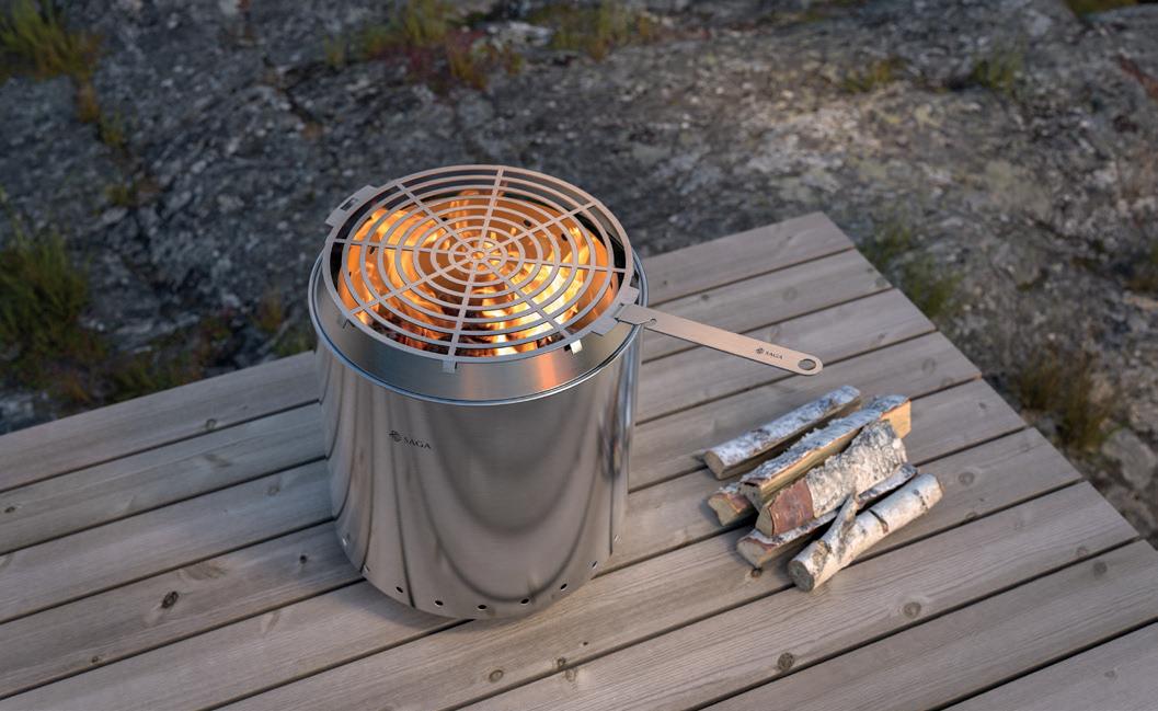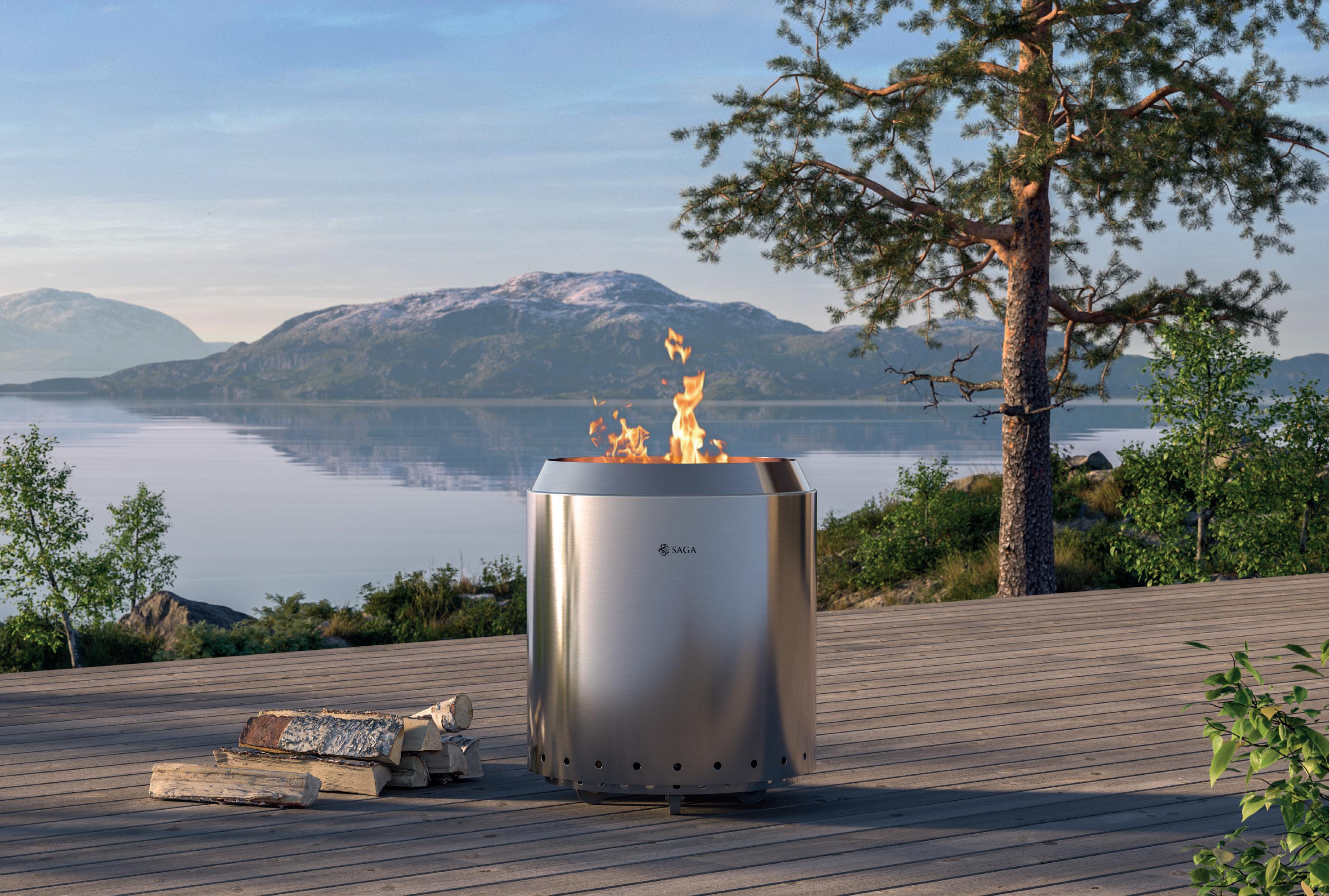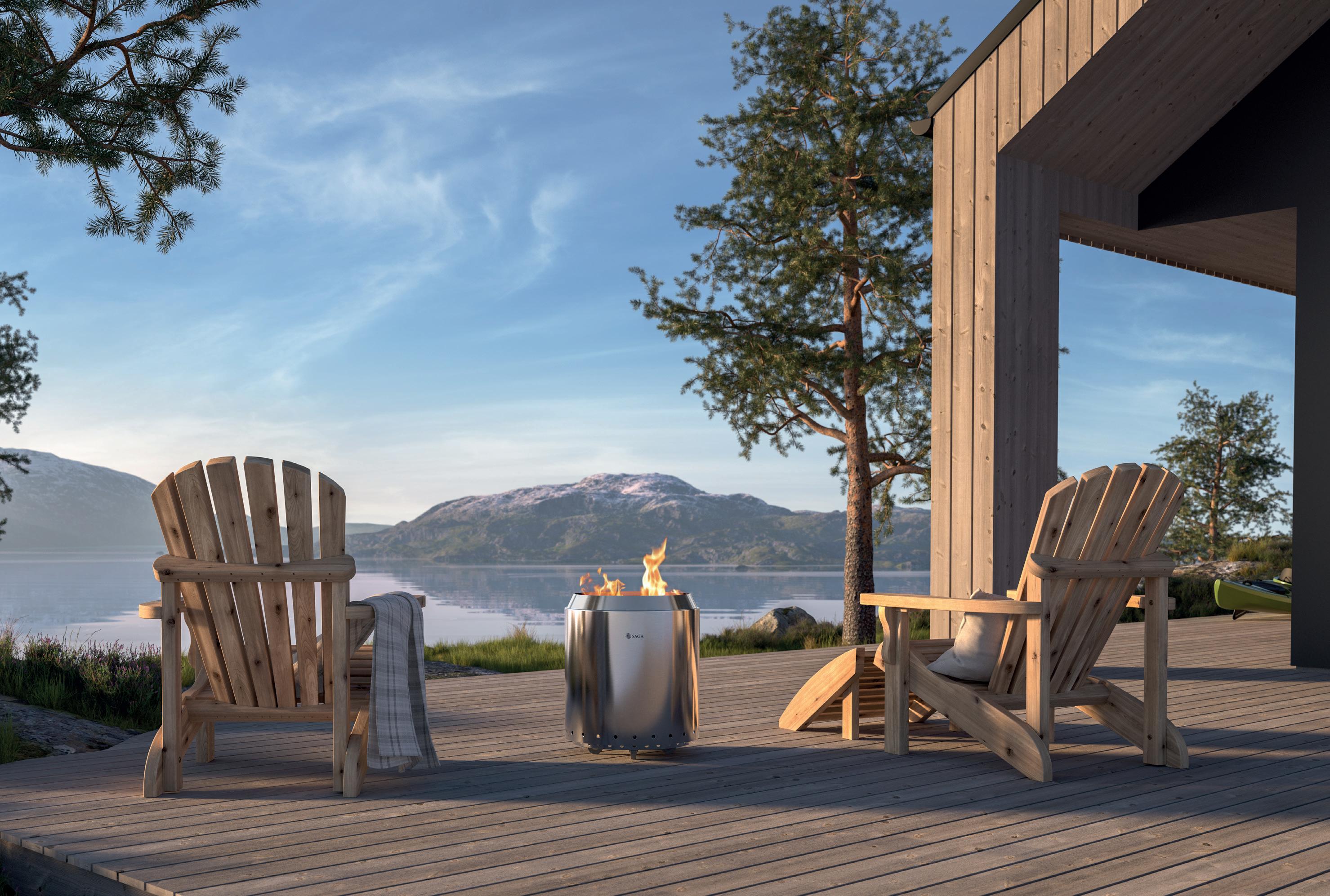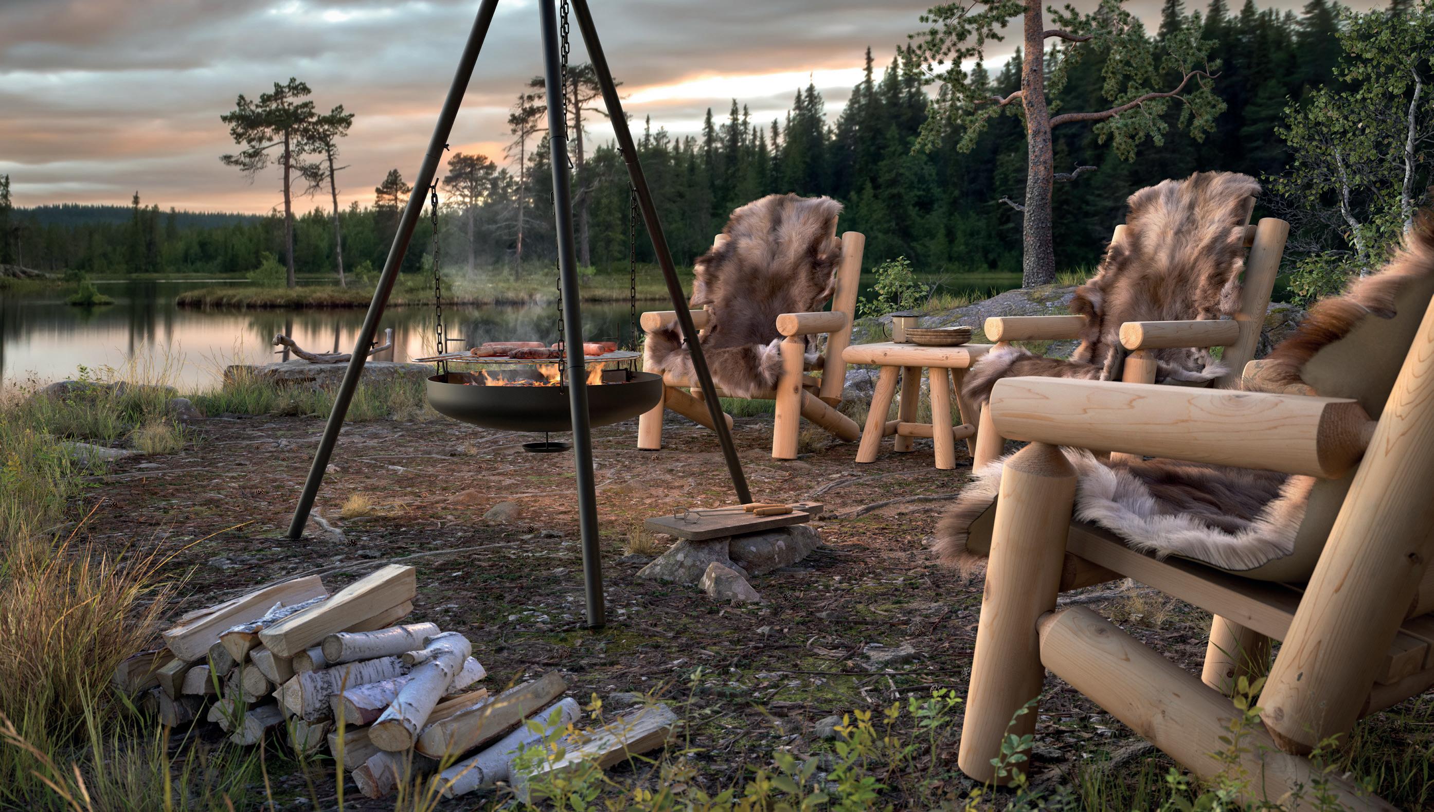 Log-møblene sørger for ekstra god stemning rund ildstedet.