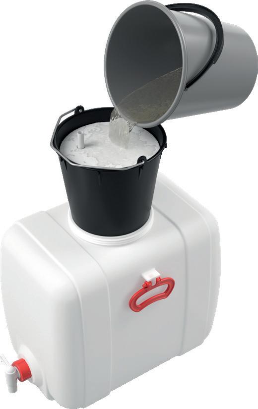 Rammeverket er produsert av kraftige lavkarbon- stålrør som gir den en meget sterk og holdbar konstruksjon samtidig som de veier lite. Den galvaniserte stålbeholderen rommer hele 160 liter. Det oppladbare batteriet gir deg mange timers drift.