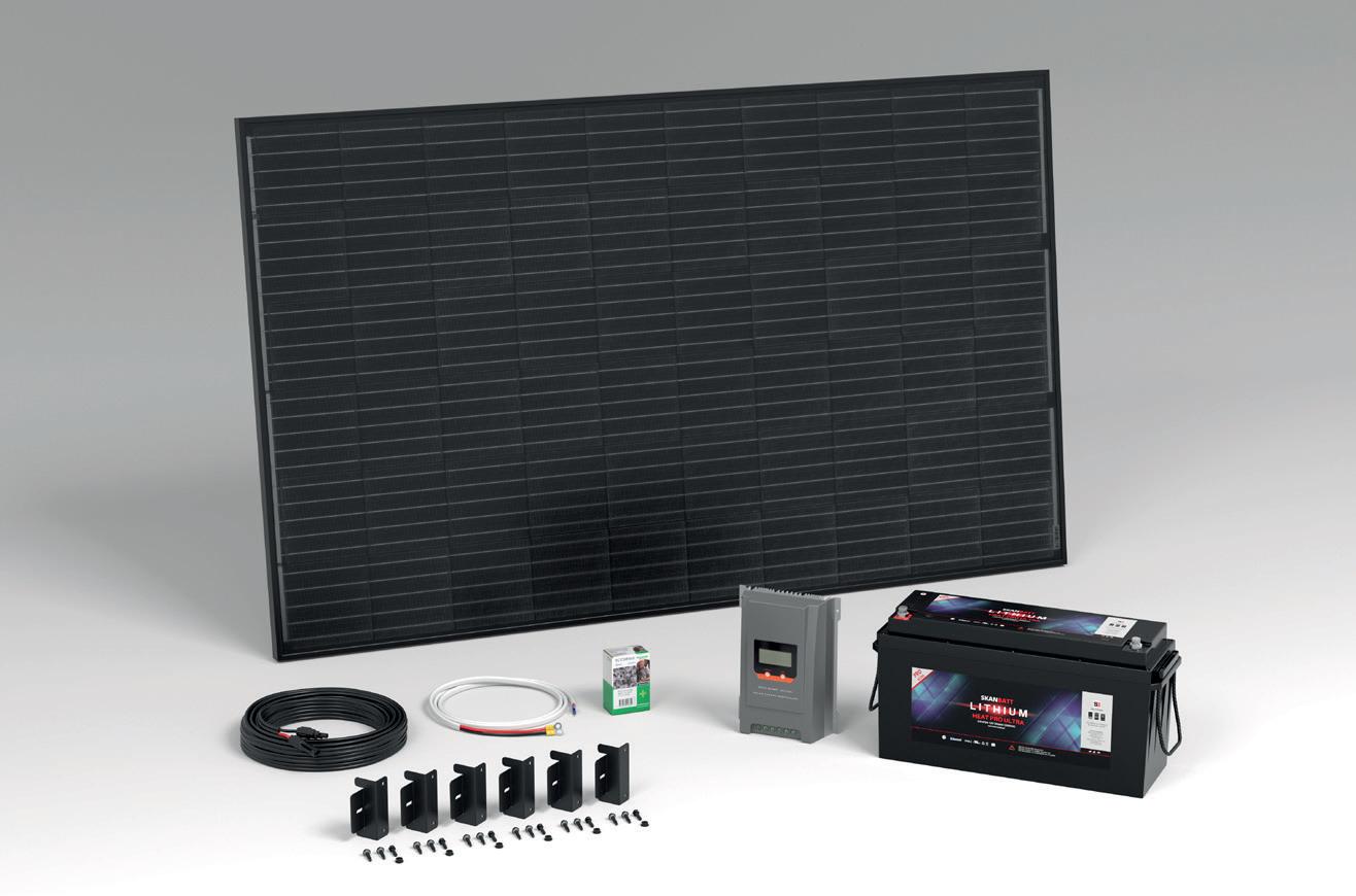 Inneholder: 335W PERC-panel, 200Ah Lithium Ultra batteri, 30A MPPT-regulator og koblingsmateriell.