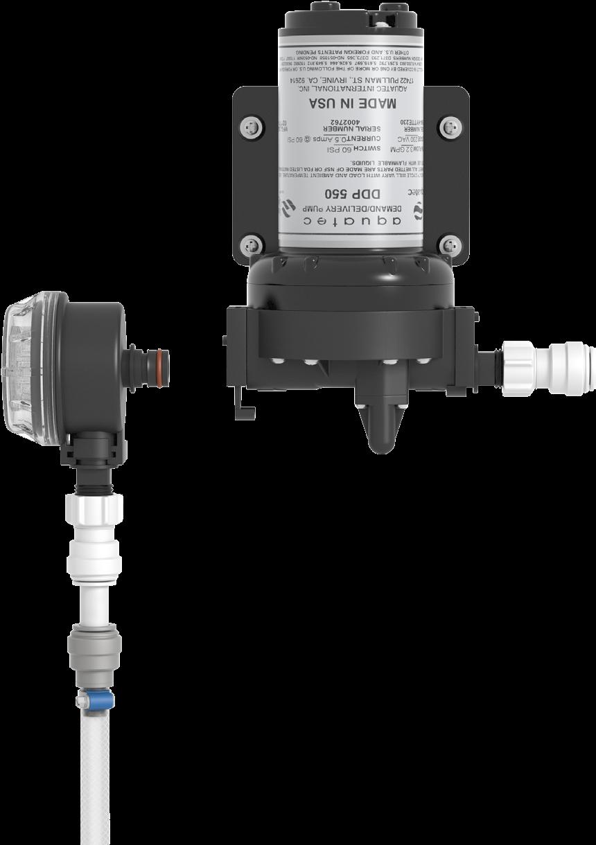 5 Sett filter med slange inn i pumpen og trykk deretter inn låseskiven på undersiden av pumpen.