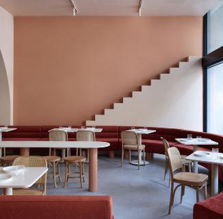 Baguette Studio’s name is inspired by its elongated layout. Behind a charming red-brick facade, this chic, minimalist space features warm timber and orange accents. The heart of the studio is an open-plan kitchen where customers can watch bread bake as they eat, creating a unique and engaging dining experience. Traditional Korean moon-jar decorations, crafted from white porcelain, are thoughtfully scattered throughout the space.
