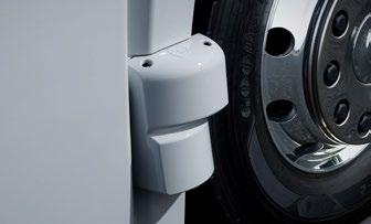 Side-front radar and side-rear radar are encased in a sturdy protective cover, giving the driver an extra set of eyes in blind