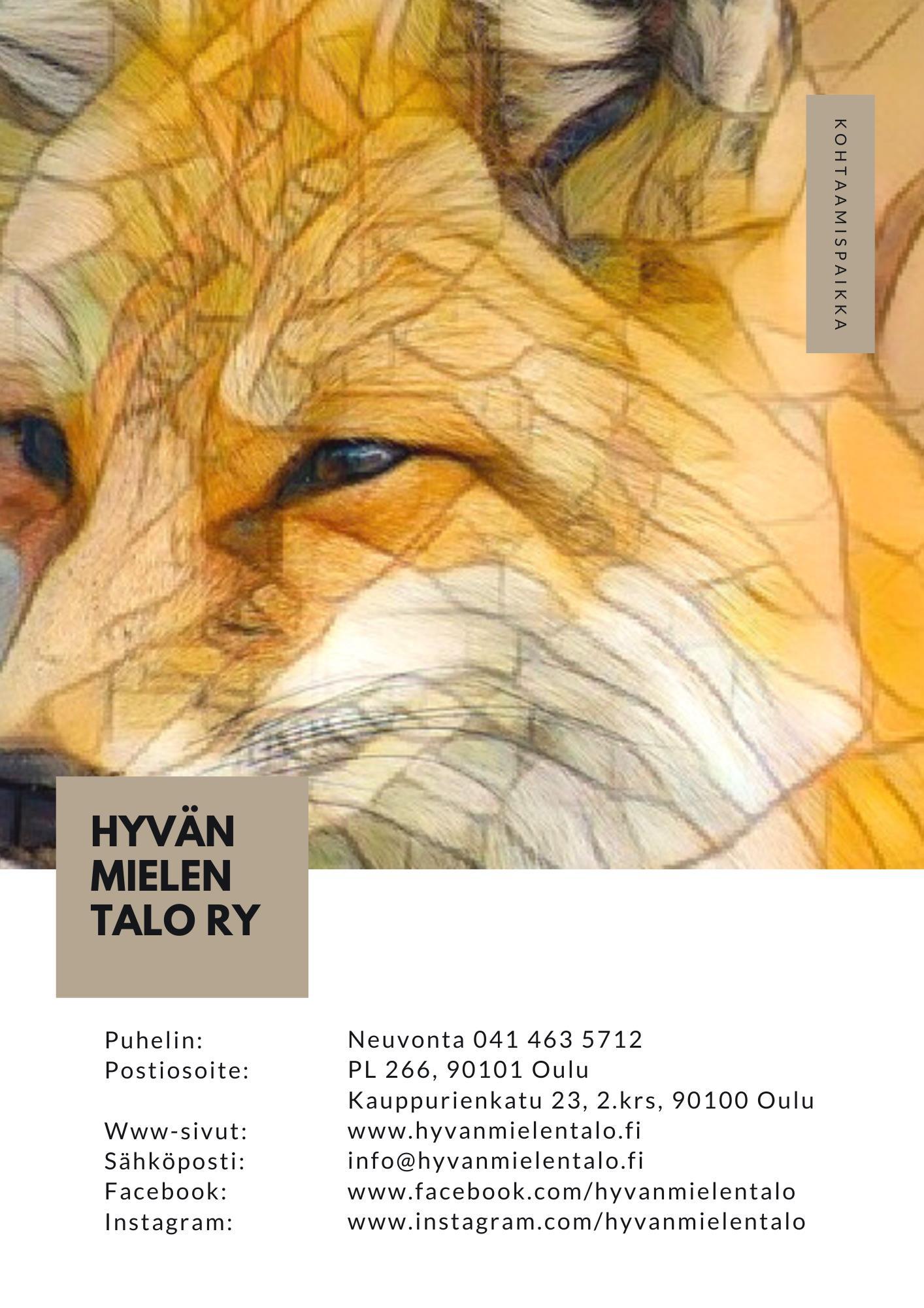 Mervi Kauppinen p. 044 408 1131, mervi.kauppinen@hyvanmielentalo.fi
