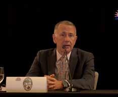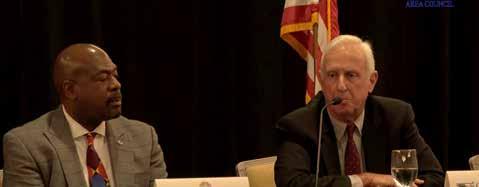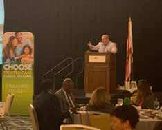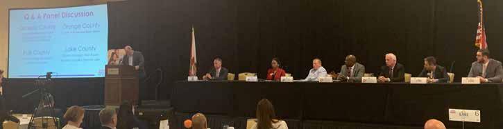 Tom Kohler of GAI Consultants moderates a panel of experts, left to right: Osceola County Manager Don Fisher, Assistant Polk County Manager Chandra Frederick, Polk County Manager Bill Beasley, Orange County Administrator Byron Brooks, Orange County Director of Government Relations Chris Testerman, Lake County Manager Alan Rosen and Elevate Lake Executive Director Brandon Matulka