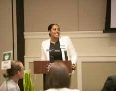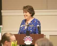 Stina D’Uva, president and CEO of the West Orange Chamber, emcees the organization’s in-person event, which asked attendees to wear masks when they were not eating