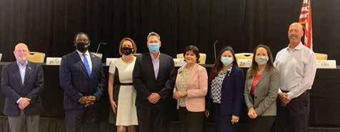 Four Corners Area Council 2021 Chairman Steve Silcock (Bardell Real Estate), 2019-2020 Chairman Allison Beeman (CEMEX), Osceola County Manager Don Fisher, Polk County Manager Bill Beasley, Lake County Manager Alan Rosen, Orange County Administrator Byron Brooks, 2020-2021 Kissimmee/Osceola County Chamber Board Chair Adrianna Sekula (Walt Disney Parks & Resorts) and Kissimmee/Osceola County Chamber President/CEO John Newstreet Osceola County Manager Don Fisher, Polk County Manager Bill Beasley, Lake County Manager Alan Rosen and Orange County Administrator Byron Brooks