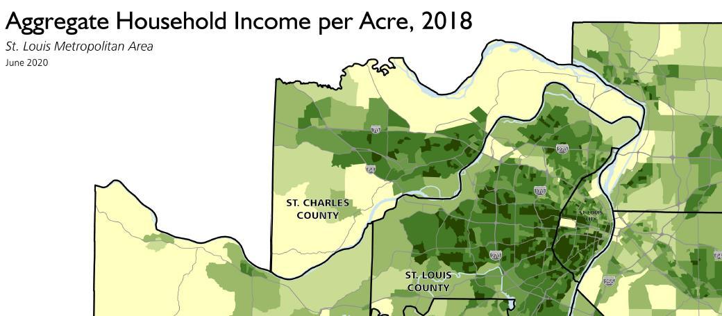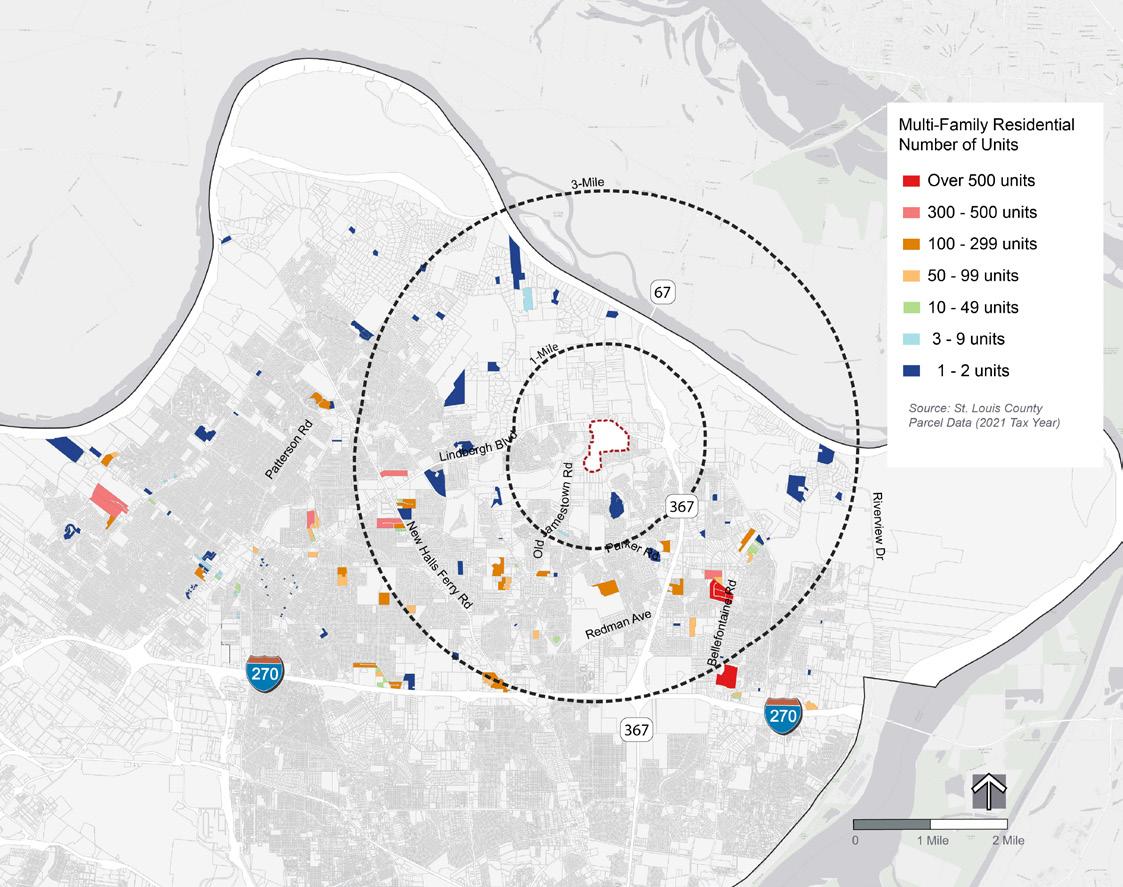 A market analysis evaluates what land uses are commercially feasible given the existing market conditions. The market analysis examines many factors, including current land use; recent or planned development; economic growth sectors in St. Louis County and the St. Louis region; demographic and housing data, trends, and projections; and market area supply and demand.