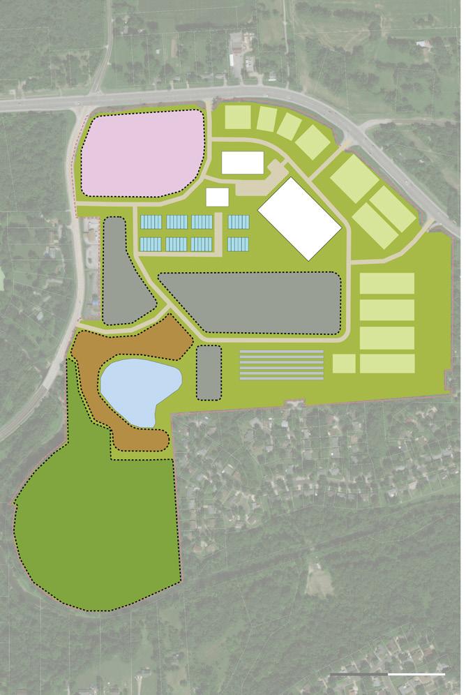 Pair annex development with programming to bring people onsite. Consider aligning development with the specific brand of the development – a focus on solar energy and/or agriculture. Focus on agriculture will have more opportunities for tenant alignment, for example:
