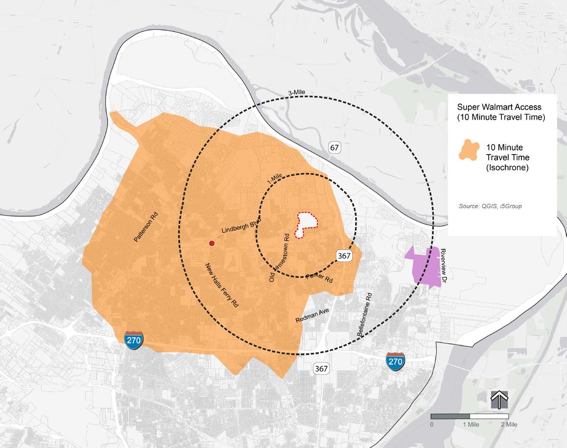 According to desk research conducted by the &Access team, there is a gap in farmers’ markets offered north of I-70 in North County (see map this page – Jamestown Mall site identified by a red star icon). A farmers’ market can complement the range of grocery stores located in nearby neighborhoods and our team recommends a farmers’ market with both fresh produce purveyors and artisans to provide sales opportunities for small businesses interested in the local North County market. (Source: &Access; St. Louis Magazine, St. Louis Sprout’s Farmers’ Market Guide)