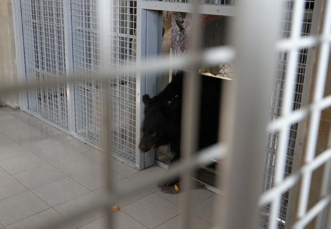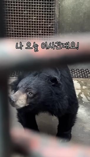 동치미는 반달가슴곰이에요. 이동 케이지에서