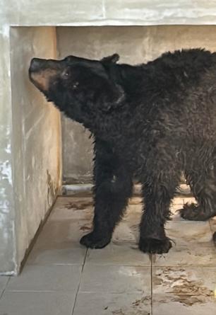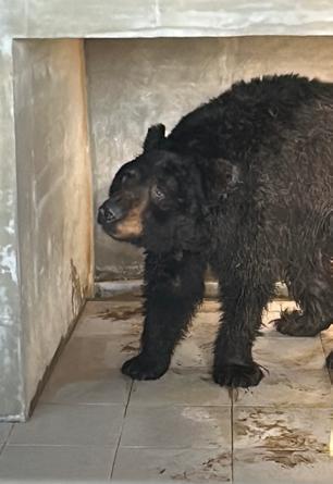 청심이는 반달가슴곰이에요. 보호소에 입식할 때 엉덩이부터 방에 들어가서 현장에 있던