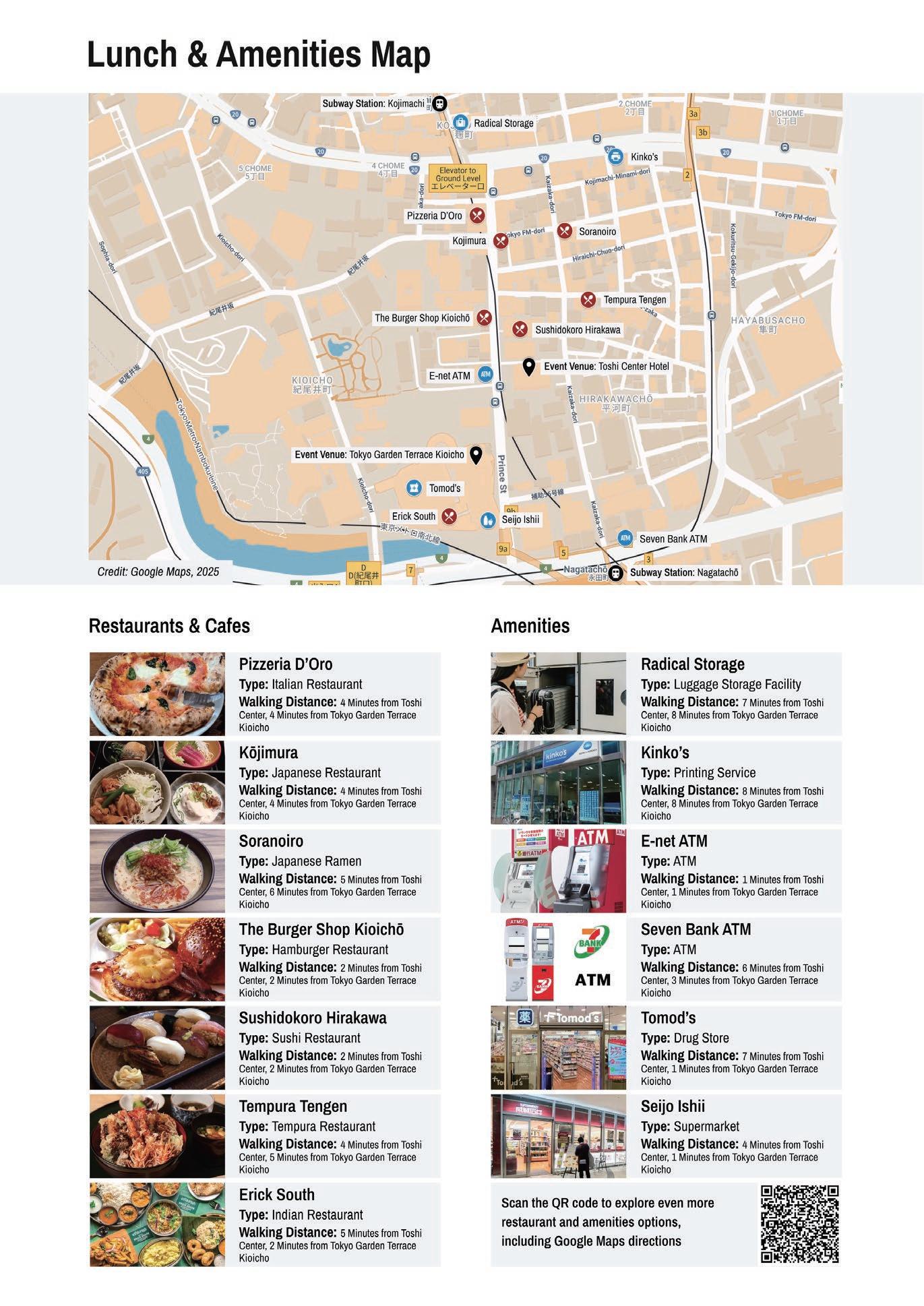 Please note that lunch is not provided. This map offers suggestions on where you can eat around the conference venue, as well as the locations of local amenities.