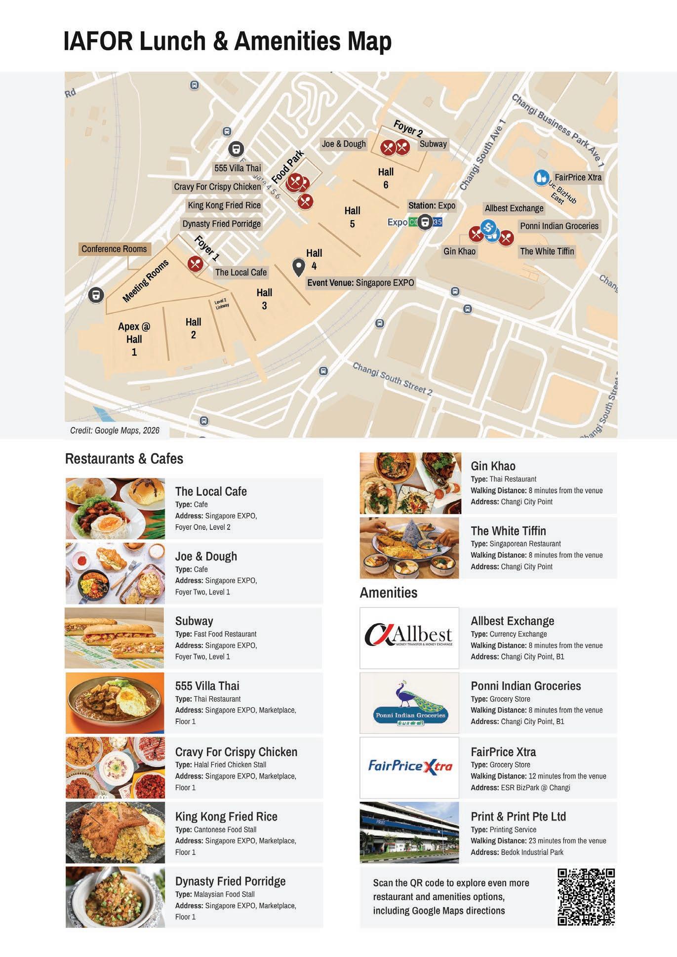 Please note that lunch is not provided. This map offers suggestions on where you can eat around the conference venue, as well as the locations of local amenities.