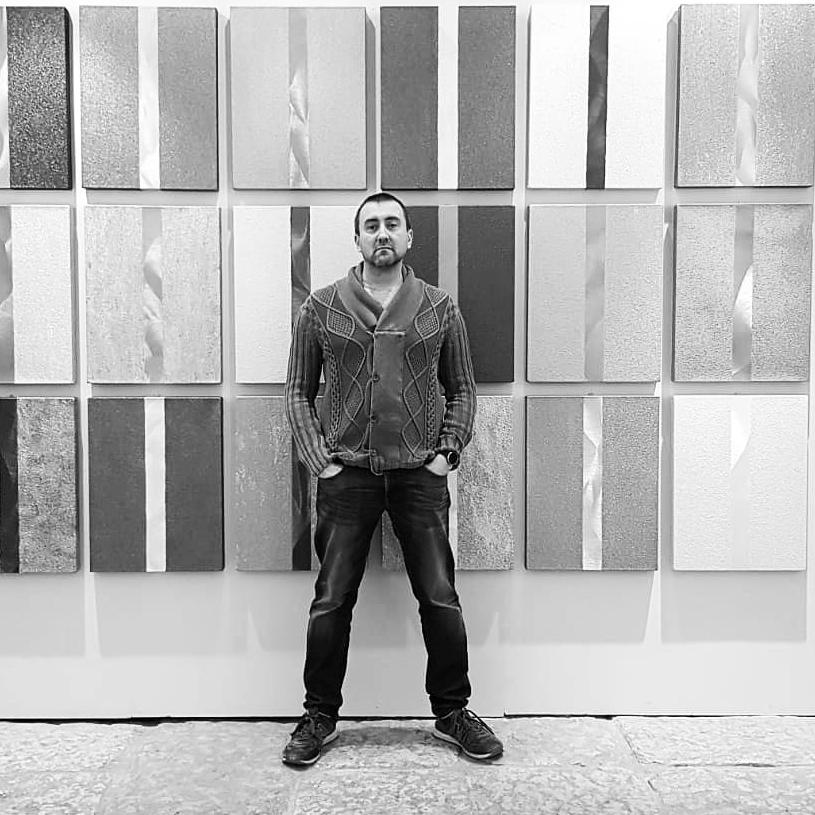 Time then marks the pictorial material through its rhythmic traces and imprints, left on the surface of the work, and organizes itself in the paintings conceived as a harmonious composition of the emblematic tables: playing on the theme of the square, the rhombus and the rectangle that brings De Angelis’s work together, from a historical point of view, that of the great avant-gardes of the 20th century, from De Stijl to Suprematism, from the issue of colour in French Pointillisme and in Italian Divisionism to the optical and segnic tables of the Sixties, from concretism to the dissemination of the work in space, to the great abstraction from overseas, to the mystical adventure of Barnett Newman, to the absolute rigour of Ad Reinhardt, to the chromatic balance of Frank Stella.