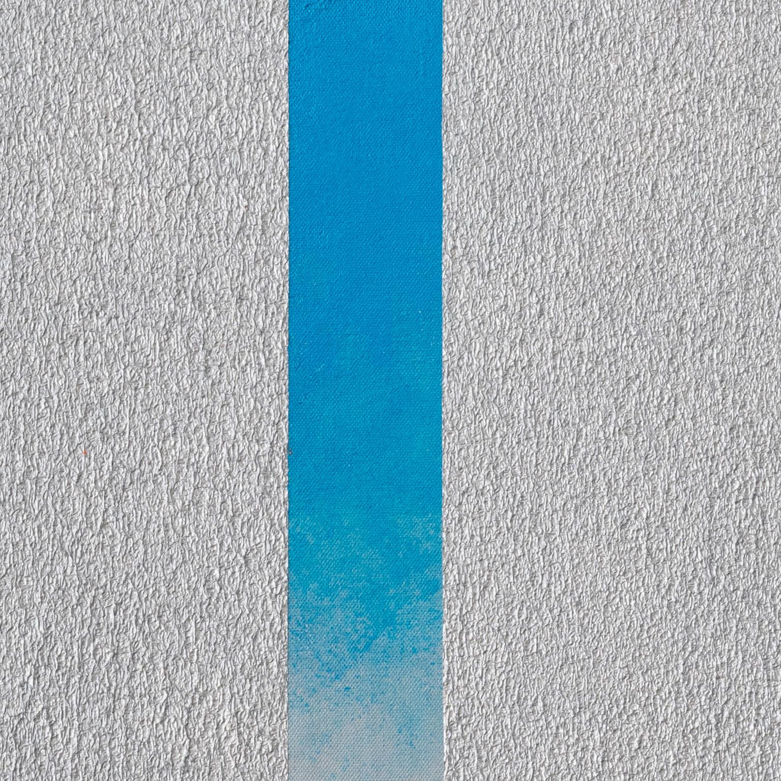 Similarly in “Innesti” (2022), the artist takes on the challenge of using a new colour, a bright and iridescent pink: the result is an effective fusion between the spiritual meditation component provided by monochrome, which changes and reverberates in the space of vision - a pink monochrome that immediately refers to Yves Klein, the master to whom De Angelis, through his explicit statement, also dedicates “Saut dans la Vide” / “Jump into the void” dated 2021-2022, to which we will return later on - and the more rational component through which the artist “engraves” small dark blue lines in the visual field, crossing the monochrome appearance of the pink.
