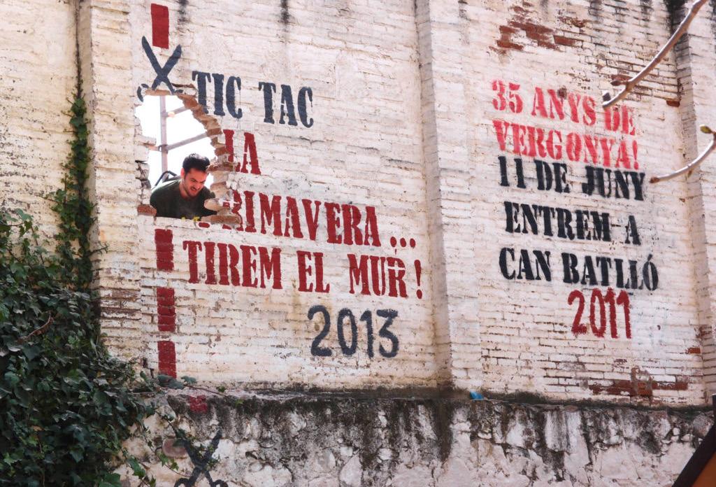 The photo shows the grassroots movements after the second wave of 2011, where they celebrated in he streets of Can Batlló’s site.