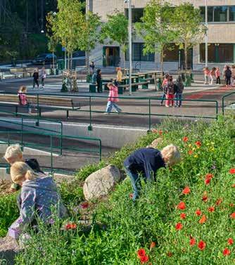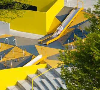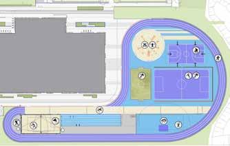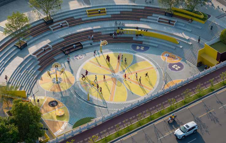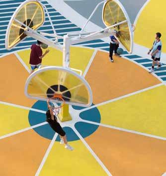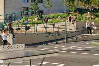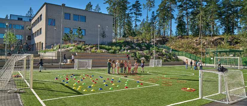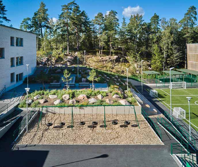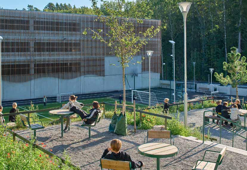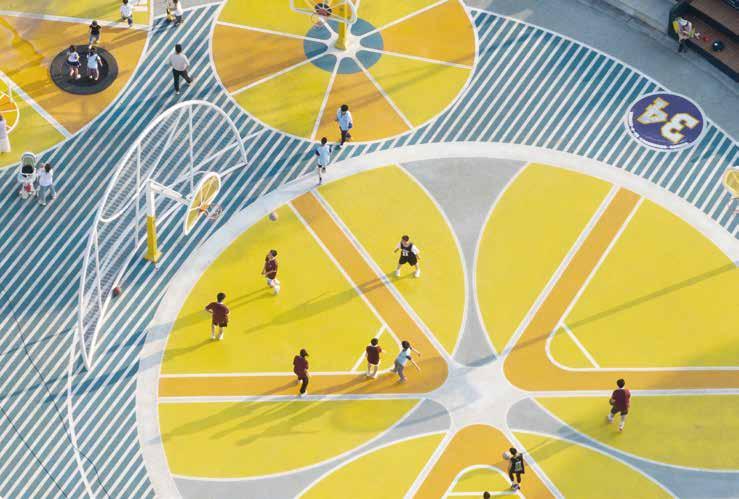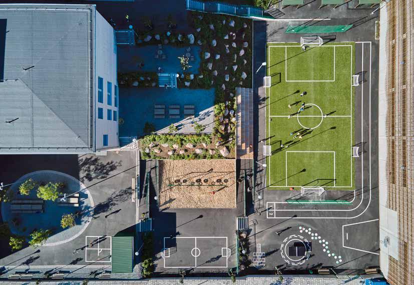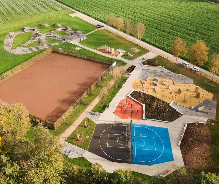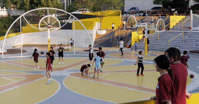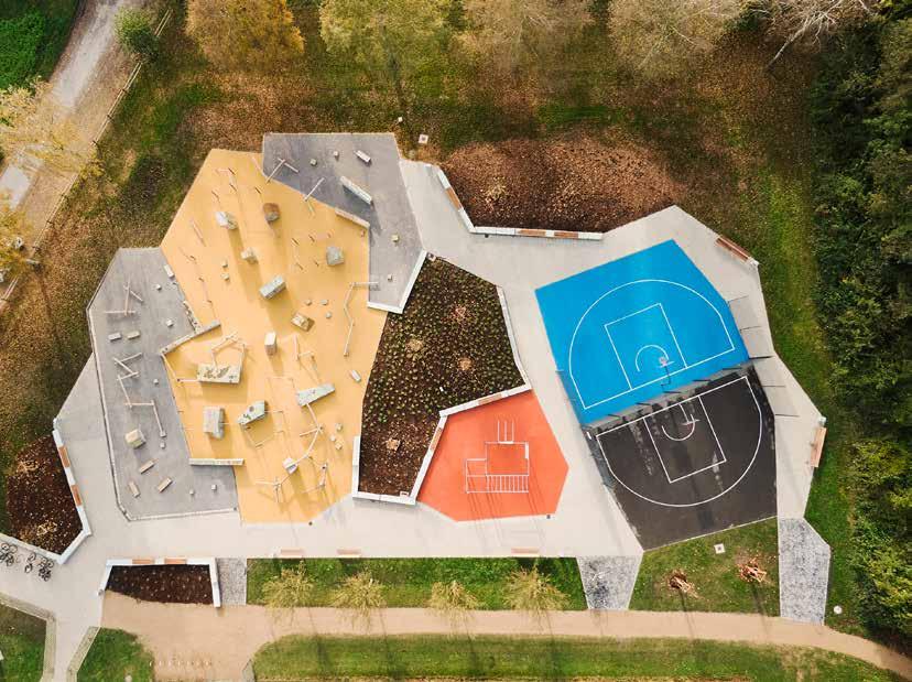 Der Skatepark im polnischen Mińsk Mazowiecki und der Bewegungspark im deutschen Oelde verdeutlichen, wie Actionsportflächen zu lebendigen Treffpunkten für junge Menschen werden können. Skateparks sind längst mehr als reine Sportanlagen – sie sind soziale Räume, in denen Bewegung, Kreativität und Gemeinschaft zusammenkommen. Der Development Avenue Basketball Park in Yichang im Westen der chinesischen Provinz Hubei zeigt, wie präzise gestaltete Sportflächen selbst schwierige urbane Räume neu beleben können. Basketballplätze gehören heute zu den niedrigschwelligsten und weltweit verständlichsten Bewegungsangeboten im öffentlichen Stadtraum. Auch im schulischen Umfeld gewinnt Bewegung zunehmend an Bedeutung. Projekte wie die Väsjöskolan in Schweden zeigen, wie Schulhöfe und Bildungsräume zunehmend als vielseitige Bewegungslandschaften gedacht werden.