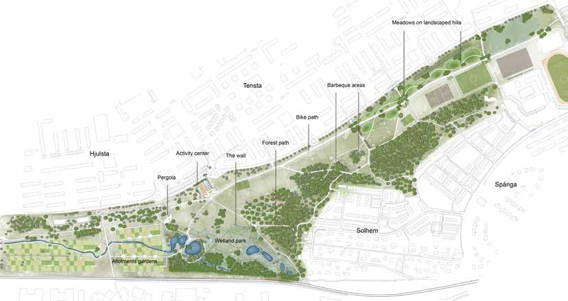 At the Tenstadalen playground and activity park in Stockholm, Sweden, a connection has been established between two different geographical areas by four very different activity elements on the hilly terrain, creating four different links between the two levels that invite users to train, play or relax.