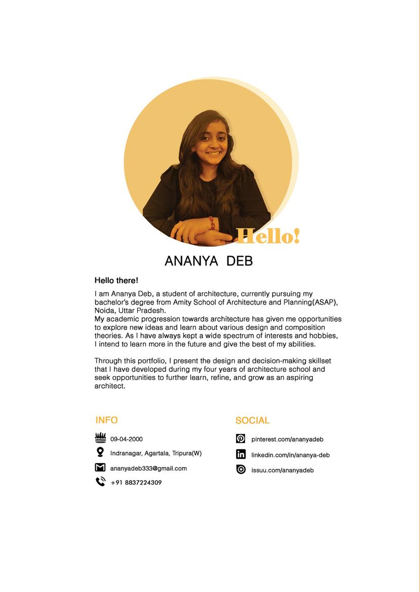 Hello there! I am Ananya Deb, a student of architecture, currently pursuing my bachelor’s degree from Amity School of Architecture and Planning(ASAP), Noida, Uttar Pradesh.