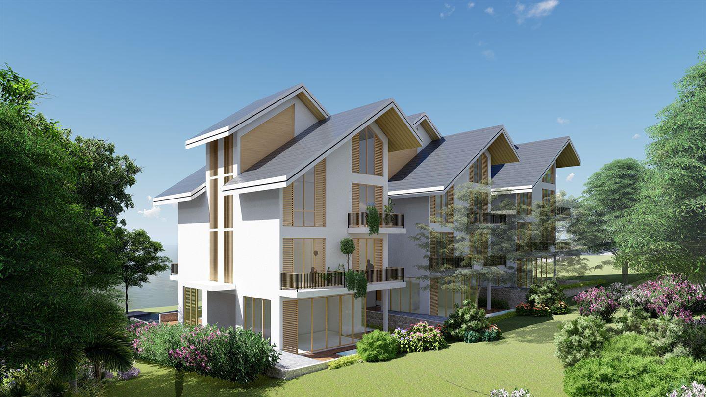 Preliminary concept design for a 80.19 ha resort complex in Hoa Binh, Vietnam including 1,118 low-rise units - shophouses and mid- to high-end villas. PTW Architects explored three architectural themes: European, Viet/Chalet, and International.