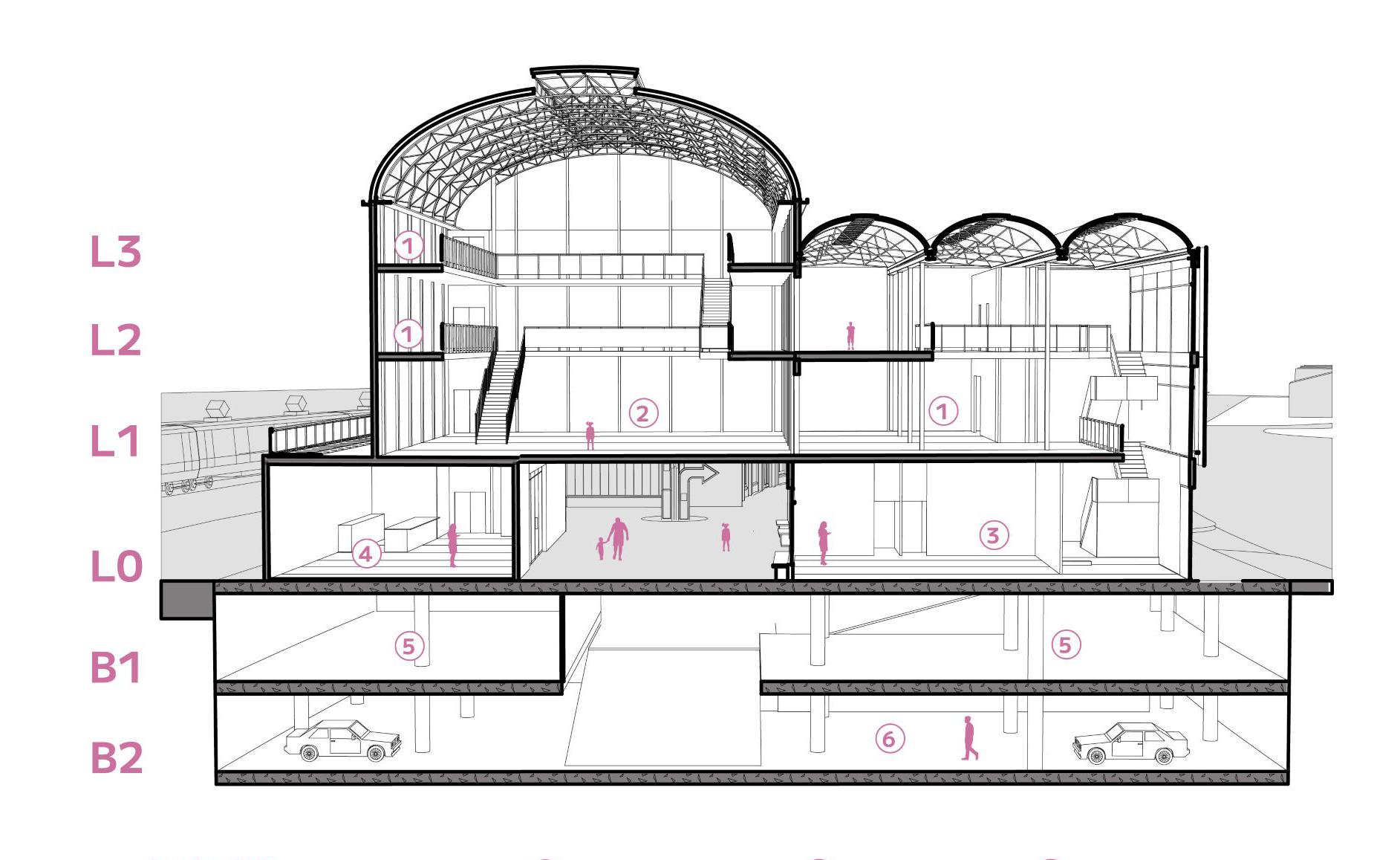 Its massing respects the residential suburb’s fine-grain scale, reimagining industrial forms through a child’s lens to create a playful, narrative-driven experience.