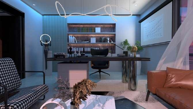 Having a stressful day from work is inevitable, that's why having a home office that is relaxing is what the designer aimed for. With the concept of okeanos in mind, it's like looking at the ocean while breathing the fresh air. Doing your work in an environment that is less feel like an office will help the user feel more relieve and relax. Okeanos will serve as a place of productivity and fun.