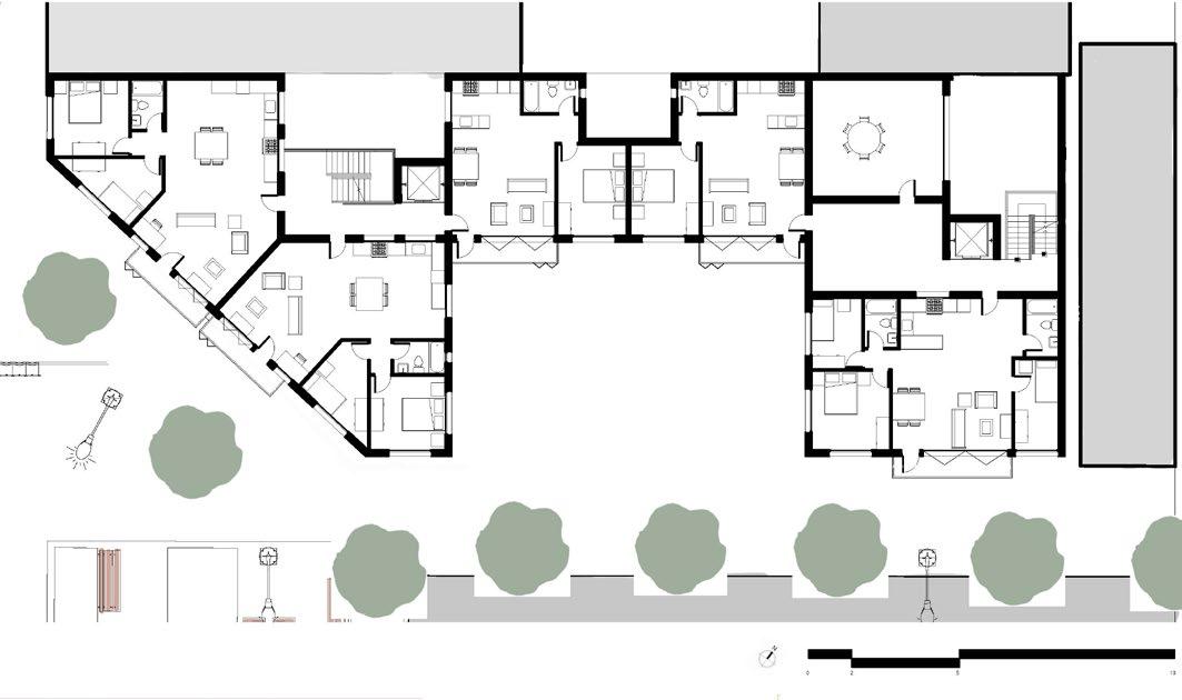 Domesticity explores how designed environments foster well-being, companionship, and daily routines. Shaping spaces based on the human strucure allows for functional and personal spaces that cater to residents’ needs within them. Incorporating a mix of public and private spaces fosters a sense of transition between the levels of publicity in one’s daily life. This is done through openings, corridors, and openplan layouts to diversify the plan and walking path. Additionally, designing for the minimum space required for reasonable comfort allows for efficiency and ensures that functions exist in every square centimetre of the plan. In essence, domesticity ensures that designs are made with the human at the forefront.