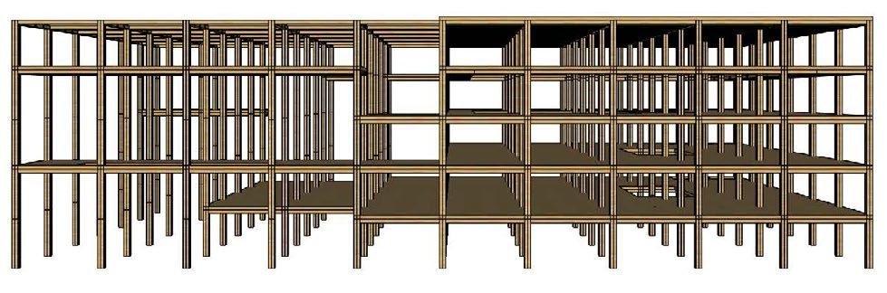 The Melopee School located in Ghent, Belgium is a fantastic example of a grid being used in steel construction. As an experiement, converting the building to utilise a mass timber structure grid can transform the strucutre of the building as well as the overall building form and use case. Analysing the anatomy of the strucutre grid is vital in order to make the transformation happen.