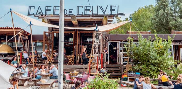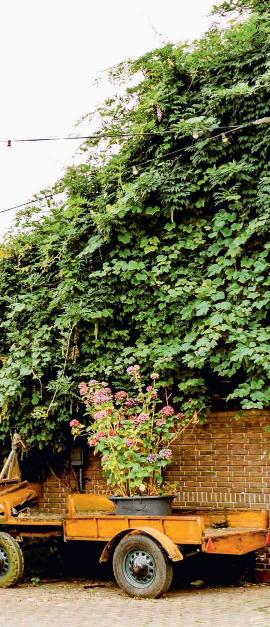 workshops and a café serving locally sourced food and homegrown lettuce and herbs, while NoordOogst in the north is an organic self-harvest garden with more than 70 varieties of vegetables, berries and flowers. Also in the north is De Ceuvel, the city’s first circular office park. It owes its current existence to a 10-year lease from the city, as does Wijn van Bret, an urban vineyard in Sloterdijk. ‘It’s very important to have crops in the city, even if not in the centre,’ says Yvonne Modderman, co-founder of Wijn van Bret. ‘By growing local, there’s less CO2 impact because there’s less transport. People can visit and be part of the community, tending the vines and going home with the harvest.’