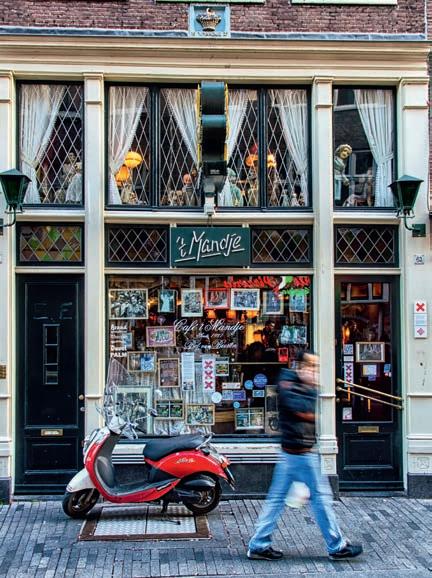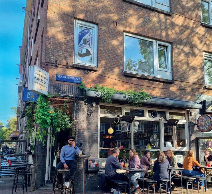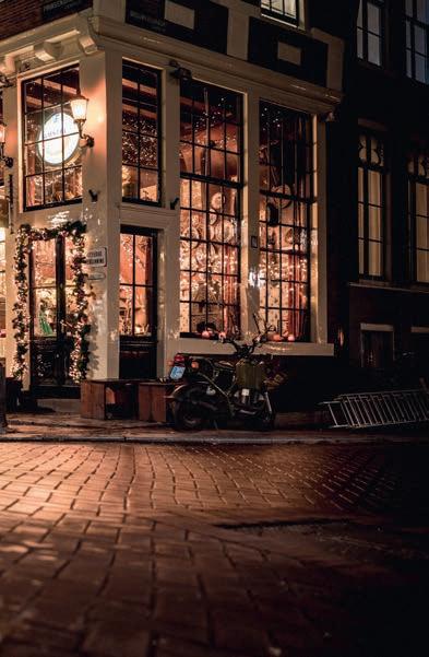 Café Hoppe (Spui 18-20, cafehoppe. com) since 1670 and still it’s still a popular choice. The Zuid crowd converge at Café Wildschut (Roelof Hartplein 1-3, cafewildschut.nl), which is one of the city’s first grand cafés and remains an excellent spot for networking and catching the late afternoon sun. Other good borrel spots include brown cafés near offices, including Café-Restaurant Hesp (Weesperzijde 130-131, caferestauranthesp.nl). But whether you choose a cosy oldschool bar with a warming fireplace, such as Café de Wetering (Weteringstraat 37), a casual canal-side eetcafé like Van Pu elen (Prinsengracht 375-377, restaurantvanpuffelen.com) or a Gen-Z hangout such as Kikkie van De Prinsensluis (Prinsenstraat 30, kikkie.amsterdam) all you need to know is that the art of the borrel is about having a relaxed attitude.