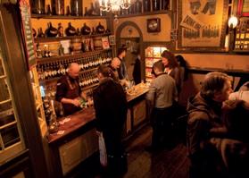 casks behind the bar alongside authentic snacks such as ossenworst (smoked raw beef sausage). At Wynand Fockink (est. 1679, Pijlsteeg 31, wynand-fockink.nl) you can sip on over 80 genevers. Try a kopstootproeverij (four different