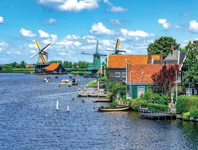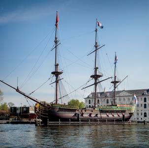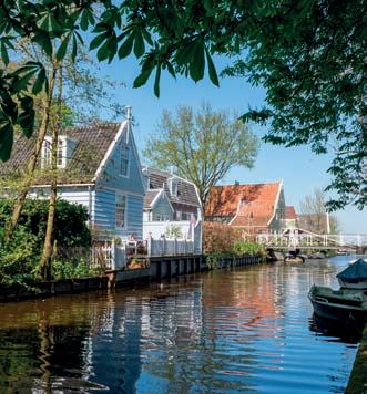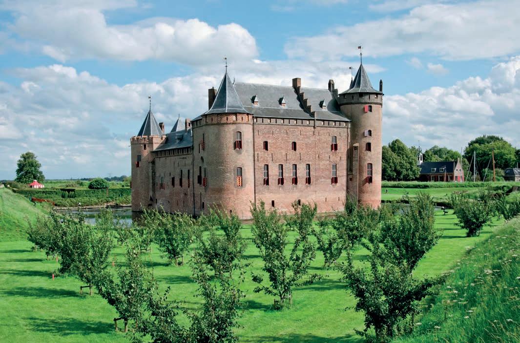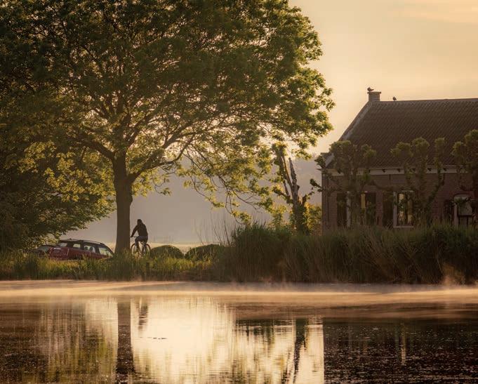 Follow the Amstel by boat or bike, and you’ll pass into some spectacular countryside where 17th-century estates built by wealthy merchants line the riverbanks. This lush green region is dotted with beautifully-preserved towns and enchanting villages, such as the 12th-century Ouderkerk aan de Amstel, which o ers various scenic spots for waterside dining. Elsewhere in the region, country houses such as Kasteel Museum Sypesteyn boast period rooms, quaint tea rooms and exquisitely manicured gardens. Nature is abundant in the region, and the Westeinder and Loosdrechtse leisure lakes are dotted with tiny islands teeming with wildlife, picturesque beaches and opportunities for water sports. Meanwhile, fortified towns such as Muiden – home to the medieval Muiderslot Castle – Weesp and Naarden are fantastic for exploring The Defence Line of Amsterdam, a ring of fortifications around the Dutch capital. For a fabulous adventure, take the ferry to Forteiland Pampus, a man-made stronghold rich in history.