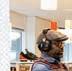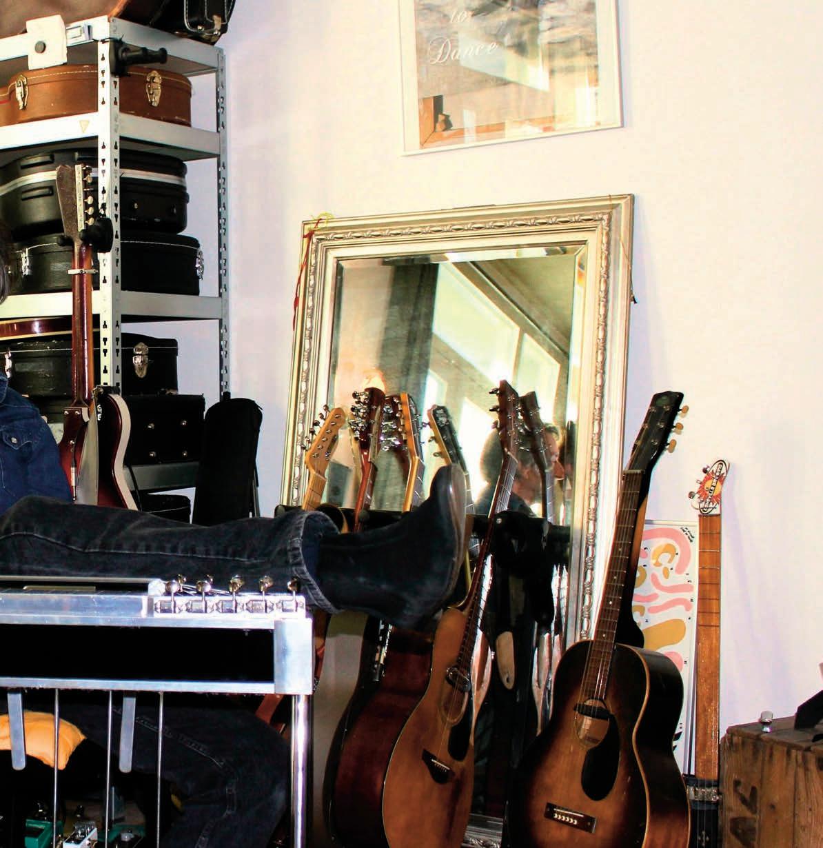 ‘De gevel is dragend, binnen zijn verder geen vaste muren. Daardoor kunnen de verdiepingen vrij ingedeeld worden. Het heeft de sfeer van een loft, en er is plaats voor m’n instrumenten. Ik ben muzikant, momenteel tour ik met de band Her Majesty door het land met de muziekvoorstelling Los Angeles city trip.’