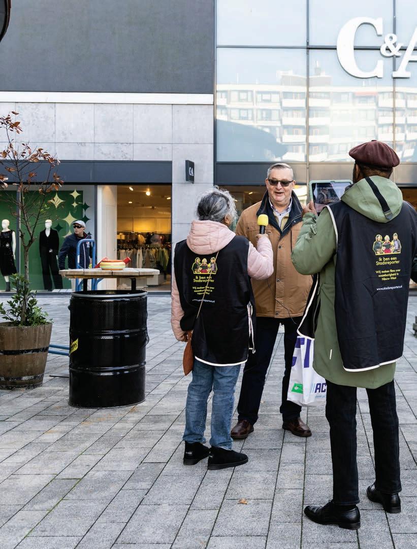 zijn en openstaan zijn de beste ingrediënten voor een jn thuisgevoel. Doen, doen, doen – dat is volgens oprichter Mirna Ligthart (54) het geheim achter het succes van de Stadsreporters. ‘Wij zetten mensen in hun kracht door samen iets te maken waar ze blij en trots van worden. Doordat de reporters op een leuke manier uit hun comfortzone gaan, overwinnen ze iets in zichzelf. Elk mens heeft de behoefte om van betekenis te zijn. Wat ik veel zie op het gebied van eenzaamheid, is dat mensen op de een of andere manier het gevoel hebben dat ze geen waarde meer hebben. ‘Ik heb nu weer collega’s!’ hoor ik vaak. Sommige repor-