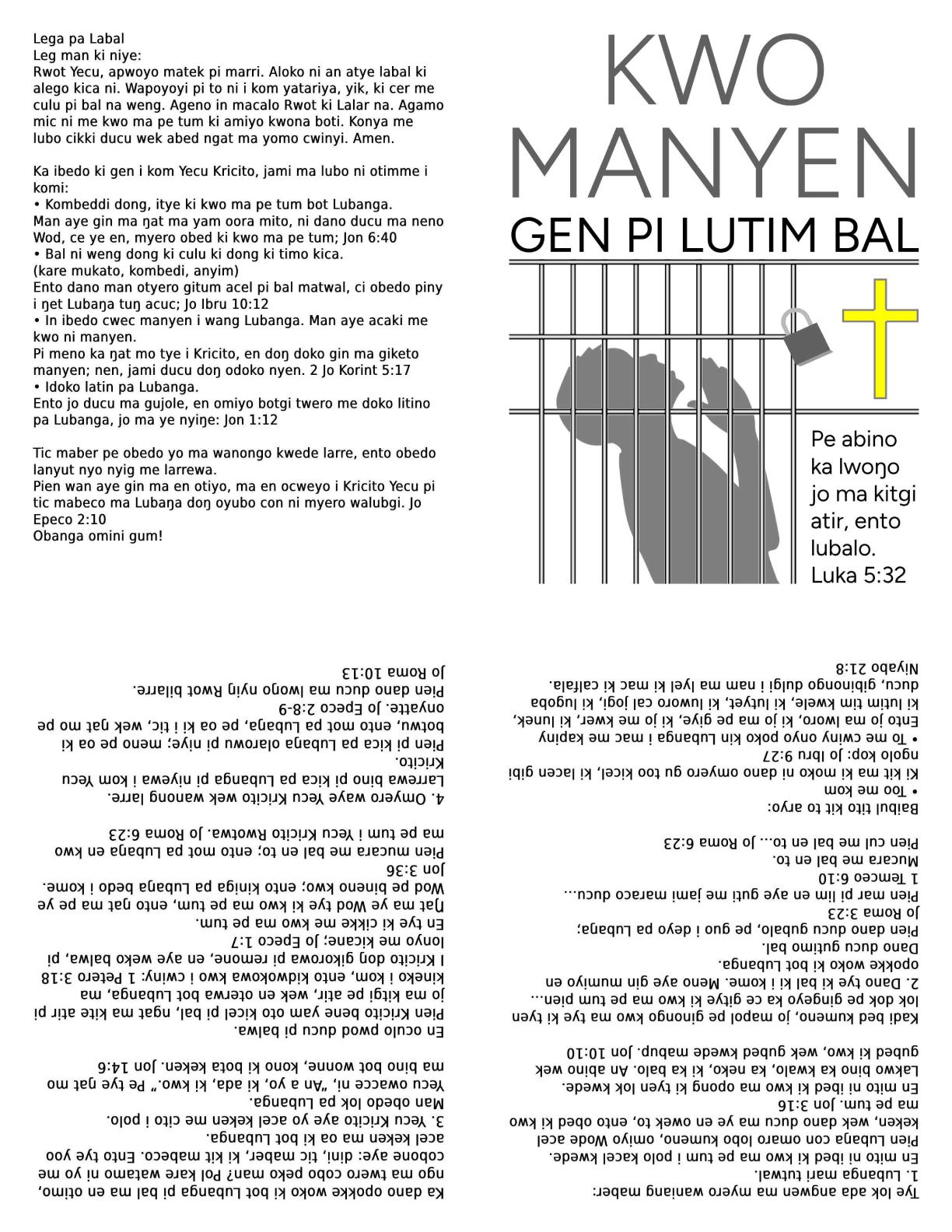 Printable Acholi Gospel Tract - Prisoner's Hope