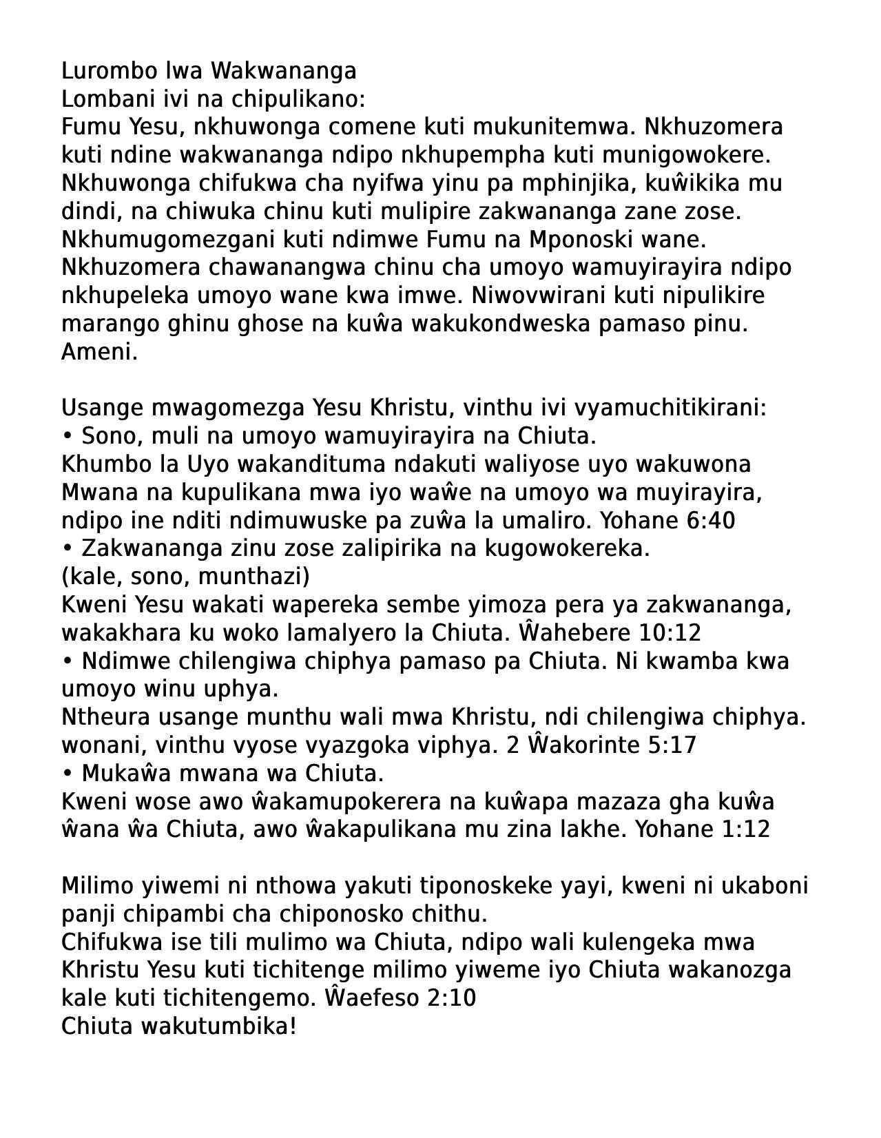 Tumbuka Gospel Tract - A Memorial to Mary of Bethany