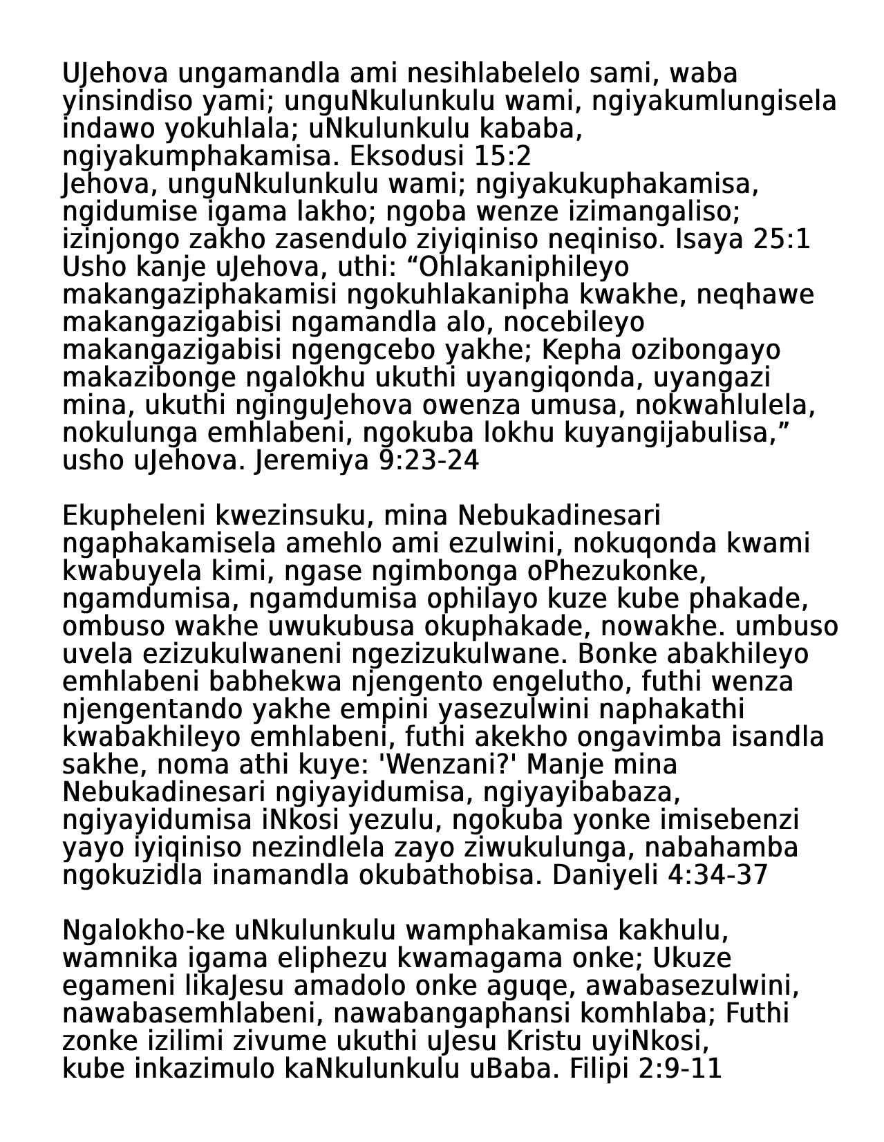 Zulu Praise Worship Thanksgiving Tract