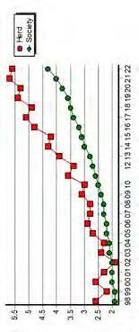 ● The Wirruna herd should be a role model for profitable commercial beef herds in southern, higher rainfall zones of Australia. With emphasis on fertility, the cow herd, under high stocking rates will set optimum productivity levels based on per hectare, rather than per head parameters to promote efficient low maintenance cattle.