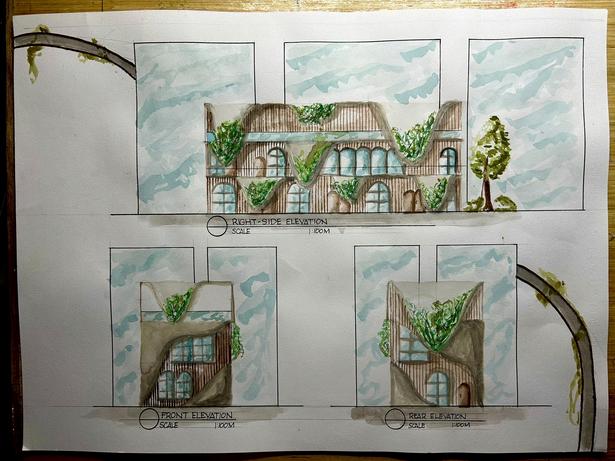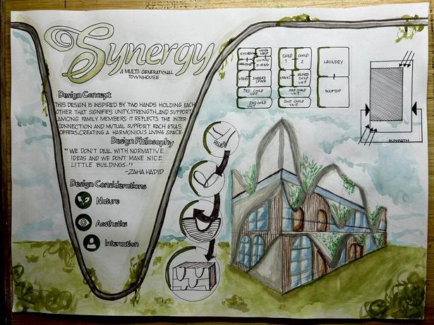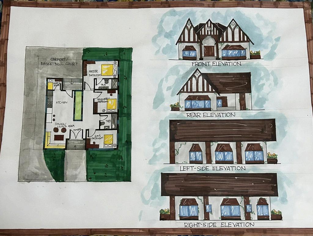 The design of the townhouse stems from my interest in incorporating greeneries and gardens in the house to offer relaxation, aesthetics, and comfort During the final presentation, a comment was raised by Ar. Amador that changed my perspective in designing which is that we need to modify the shapeandnotputdecorationsonit.Thismademerealizeandwill helpmeinthefuturedesignplatesthatwewillbedoing.
