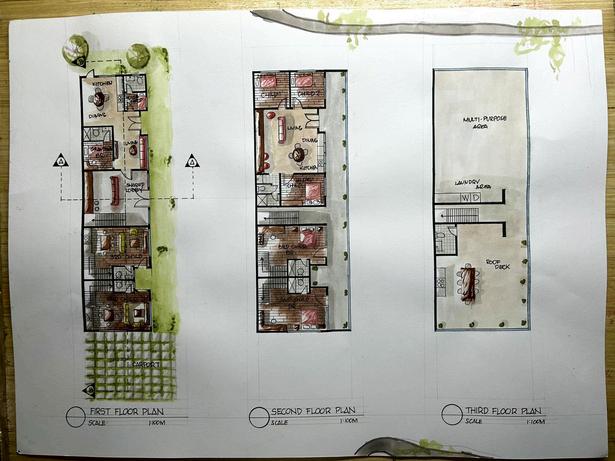 The last plate of Architectural Design 02 for me was the hardest because this is my first time to have this much required outputs in one plate as a freshmen. At first it was overwhelming while reading the brief because there are so much things to consider which includes the three generations of family that needs to be cateredinthedesignandplanningofthetownhouse
