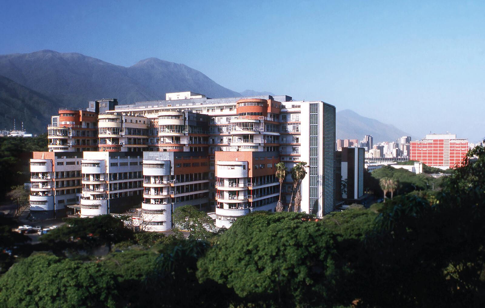 The University hospital was completed in 1954 and opened in 1956. The principle creator was Carlos Raúl Villanueva Astoul, who is a Venezuelan modernist architect. While the initial plan was to create a symmetrical large twelve-story mass, Villanueva decided to change it into four parallel strips, divided into terraces and separated by gardens. The exterior has a smooth finish with a beautiful polychrome designed by Mateo Manaure, who is a Venezuelan modern artist, mostly known for creating the largest glass mural in the world. ■