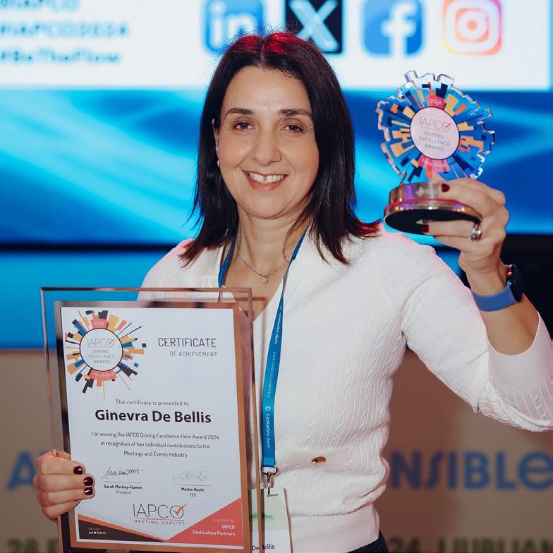 As the recipient of the IAPCO Hero Award, Ginevra received the prestigious Hero Award trophy and an education bursary, which includes travel and accommodation to attend the IAPCO Annual Meeting in Taipei, Taiwan in February 2025.