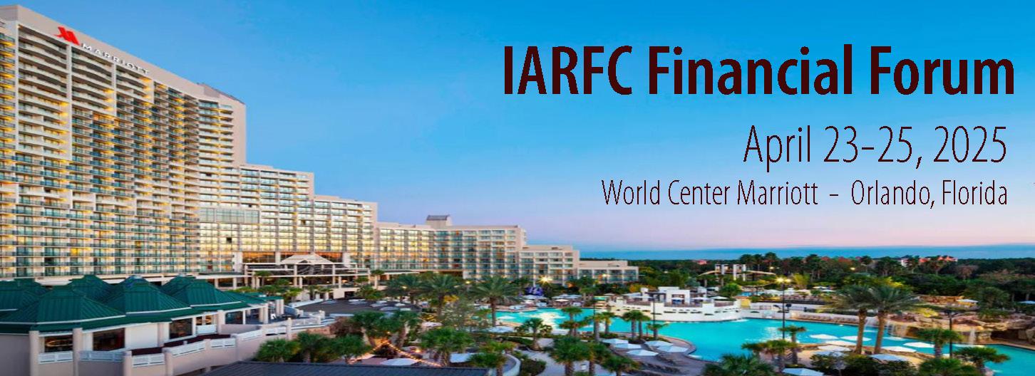 For 2025, we are planning another Conference. To represent a more defined event for years to come, we renamed the conference the IARFC Financial Forum (IFF). The planning committee feels this is a commitment to finding the best exhibitors and presenters for continuing education. Next year, the IFF will be held in Orlando, FL at the World Center Marriott - a convenient location and upscale venue to gather together. More information can be found on page 15. Our theme for the IFF is “Empowering Futures, Strengthening Legacies”. Be on the lookout for more information in the coming months regarding the lineup of presenters. Details are changing daily.
