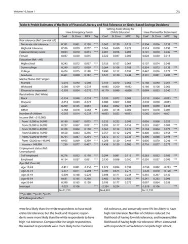 Setting Aside Money for Childâ&#x20AC;&#x2122;s Education Coef St. Error MFX Sig