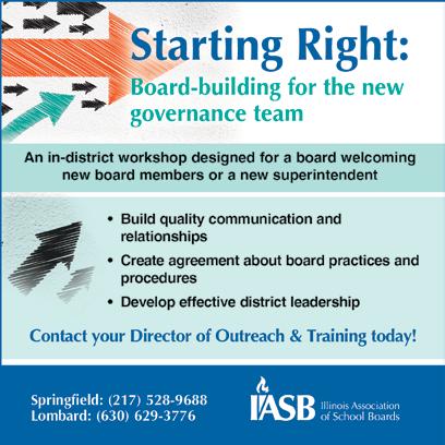 Copyright © 2025 by the Illinois Association of School Boards (IASB), the JOURNAL is published six times a year and is distributed to its members and subscribers. Copyright in this publication, including all articles and editorial information contained in it is exclusively owned by IASB, and IASB reserves all rights to such information. IASB is a tax-exempt corporation organized in accordance with section 501(c)(3) of the Internal Revenue Code.