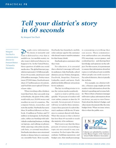 Tell your district’s story in 60 seconds By Margaret Van Duch