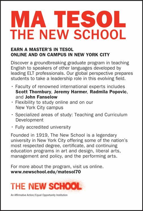 Brighton(!)S a r a h M o u n t (Director,NorwichInstitutefor LanguageEducation)invitesustotheChinesecityof Shanghai,whileVe r o n i k a R o t - G a b r o v e c (Slovenia)leadsus toAustralia’sredheart.WeclosewithajourneyfromLondon toKibera(aSouthAfricanshantytown)throughthefilmofthe novel, TheConstantGardener withK i e r a n D o n a g h y (UAB Idiomes, Barcelona).